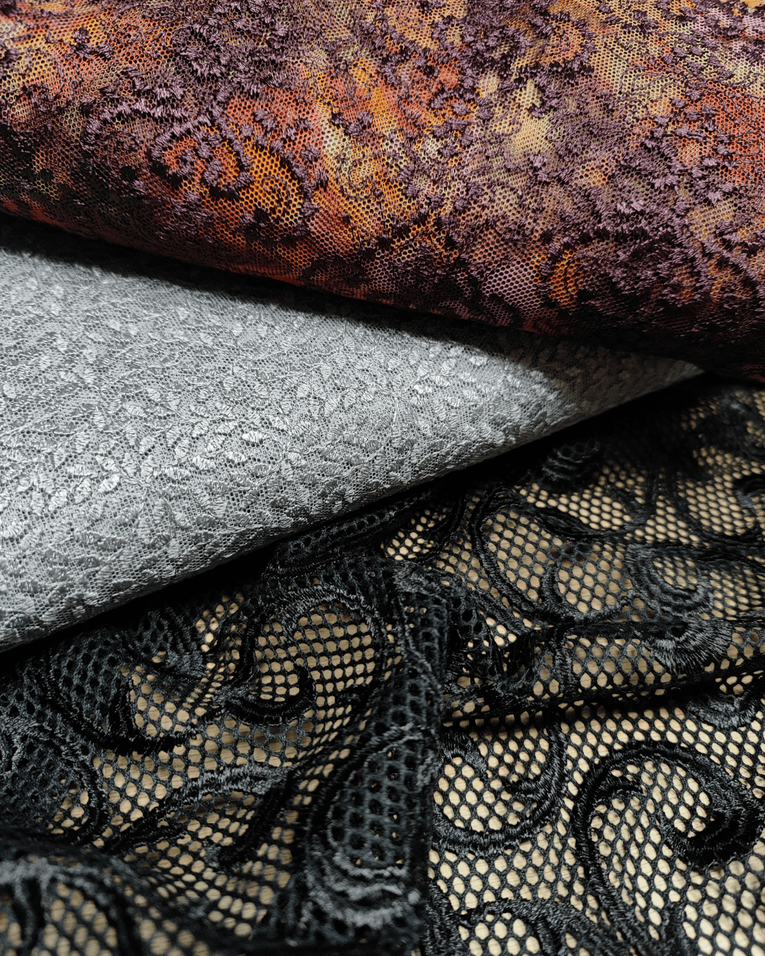 Découvrez notre dentelle sur tulle souple non extensible, fine et délicate.